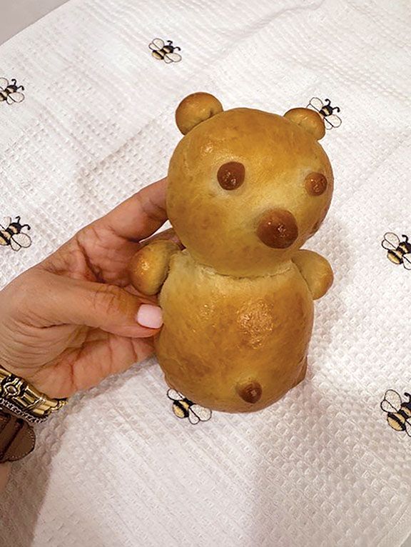 I shaped the dough into a very cute bear-shaped loaf. It was just a few different-sized balls of dough. It was simple, quick and so cute!